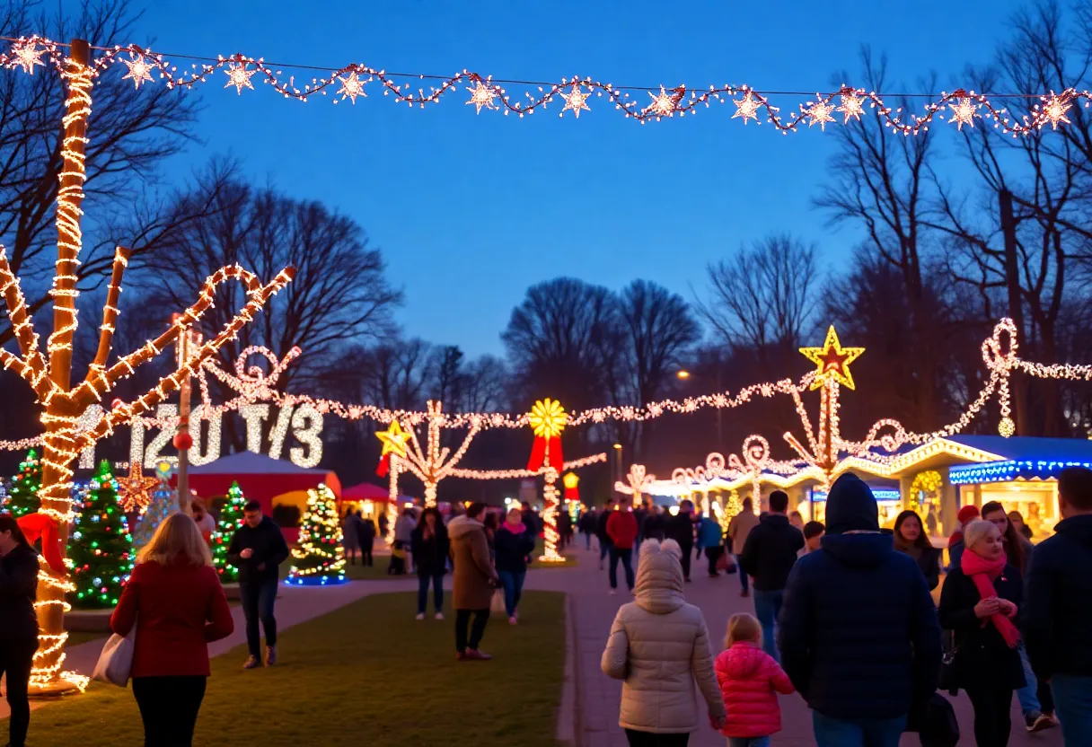 Families enjoying New Year's celebrations in a illuminated park